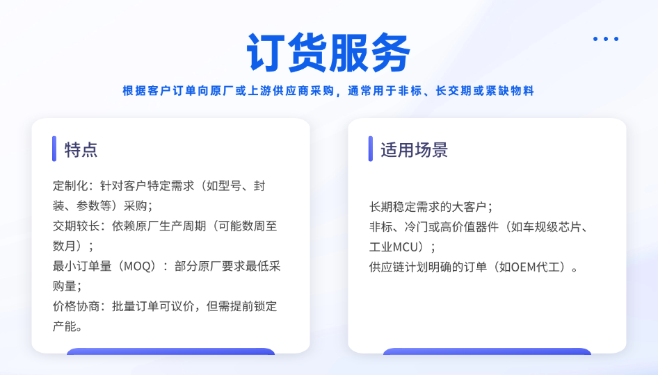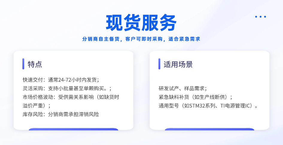 現(xiàn)貨服務(wù)是半導(dǎo)體分銷商提升競爭力的重要手段。在市場需求瞬息萬變的當(dāng)下,擁有充足的現(xiàn)貨庫存能夠快速響應(yīng)客戶的緊急需求,為客戶節(jié)省時間成本,提升客戶滿意度。