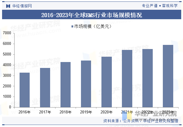 根據(jù)市場研究機構(gòu)的數(shù)據(jù)分析顯示,在2016年至2023年間,全球EMS行業(yè)的市場規(guī)模呈現(xiàn)出穩(wěn)步增長的趨勢,由3292億美元增至5436億美元,平均每年增長率約為8.72%。這一快速增長的背后反映了全球經(jīng)濟對高質(zhì)量電子產(chǎn)品需求的增長,同時也得益于EMS企業(yè)在技術(shù)創(chuàng)新方面的不懈努力以及生產(chǎn)能力的有效擴張。
